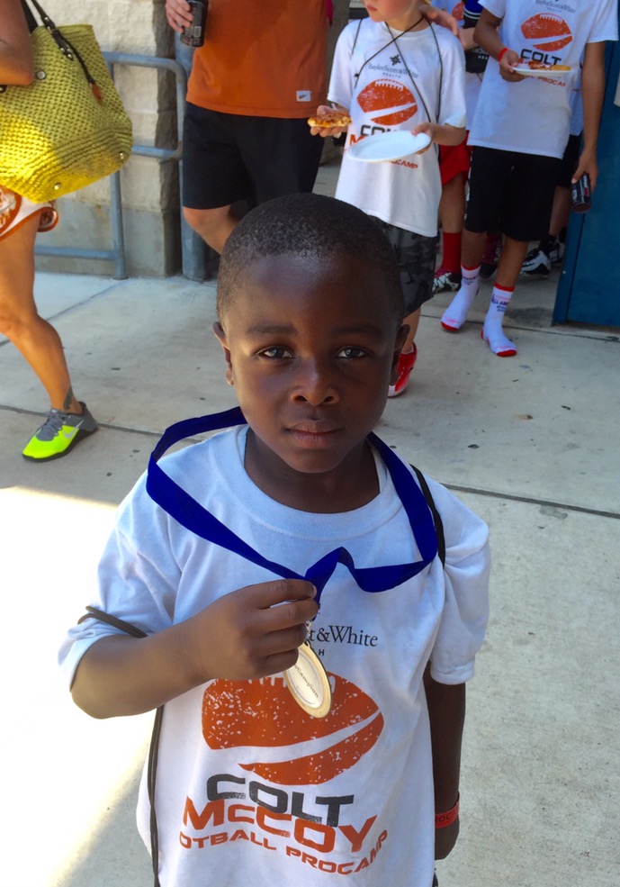 He may have been the smallest player on the football field, but he made a big impact at the Colt McCoy Football Camp. Seven-year-old BBBS Little Brother Dajuan Jessie impressed everyone as he competed with 16-year-olds and came away with the #1 Draft Pick award at the camp this past July.
