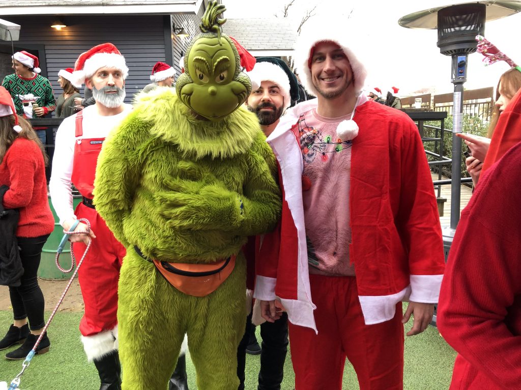 Celebrants also displayed plenty of creative spirit! This year’s costumes featured not only Santas, but also elves, reindeer, holiday-themed three-piece suits, ugly Christmas sweaters, and even a Grinch! A sweater-wearing dog got in on the fun as well!