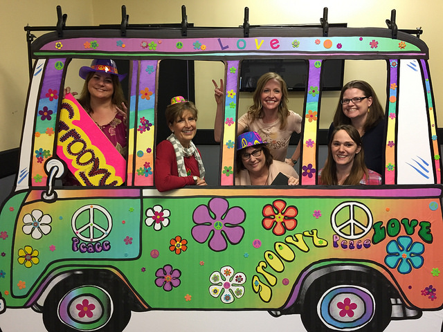 Employees from Pape-Dawson Engineers made the foam core “hippie bus” especially for the event. “It was a groovy bus,” Maria laughed. “The bus was perfect for the theme, but the thought that went into it was also great. They made it portable so that BBBS can re-use it, and they created low windows that Little Brothers and Sisters can pose behind. What a great example of how the community is not only engaged with, but also really thinking about, BBBS’ mission.”