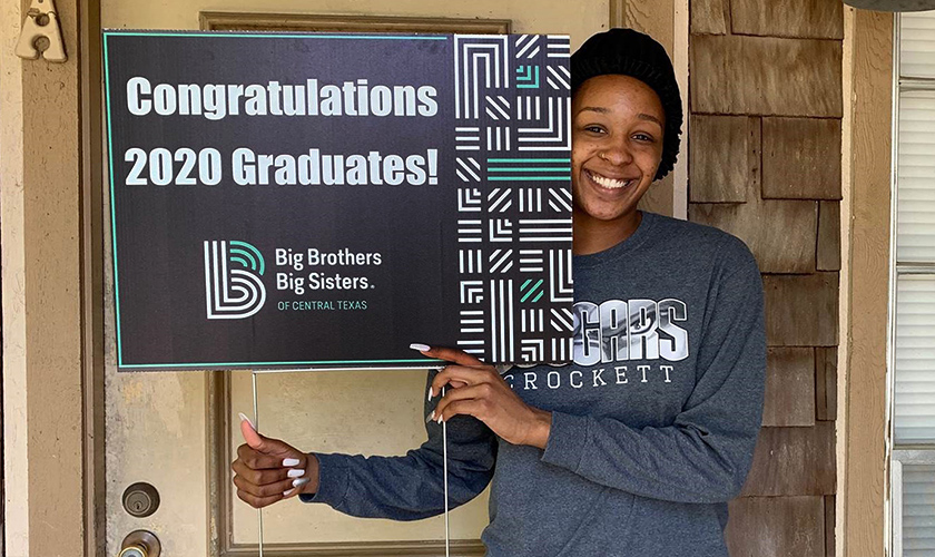 “Celebrating our graduates and supporting their academic journeys with our scholarship funds is one of the proudest moments of my role as CEO of the agency,” said Brent Fields, CEO of Big Brothers Big Sisters of Central Texas. “We’re so very proud of what these young people have achieved, and it was a special treat to see some of them, from a safe distance and with masks, while delivering their gifts and yard signs this week. I also want to applaud the parents and BBBS mentors who have supported these students along the way. While these are certainly some challenging times we’re all navigating, it’s inspiring to observe students who have persevered and who are taking steps to achieve their biggest possible futures!”