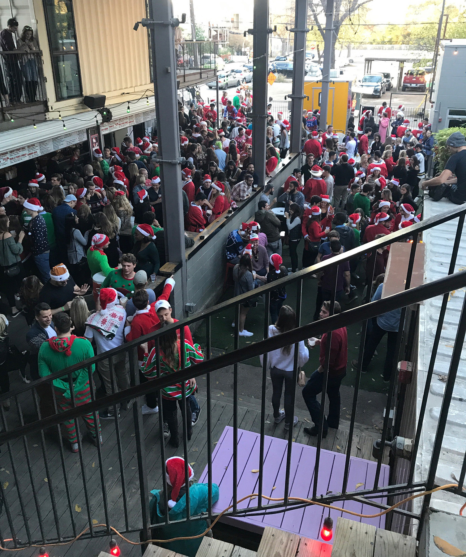 The jolly Saint Nicks began the event at Lustre Pearl where they enjoyed drinks and reindeer games, received SantaCon swag and wore their red and white with pride. They then traveled to several other venues where the games and fun continued. There were elves aplenty as the group rang in the holiday season in style.