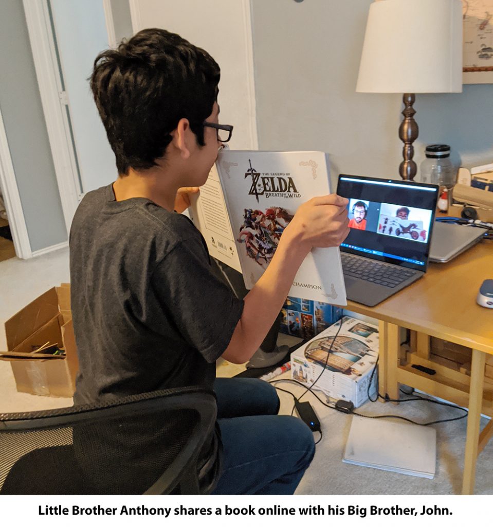 “Either the Big or Little would write a few sentences and then the other person would add to it later that day,” says Nick. “They’d write for a week and then read the story together. When they have a virtual outing, they share their creative process and why they added particular words and images.”
